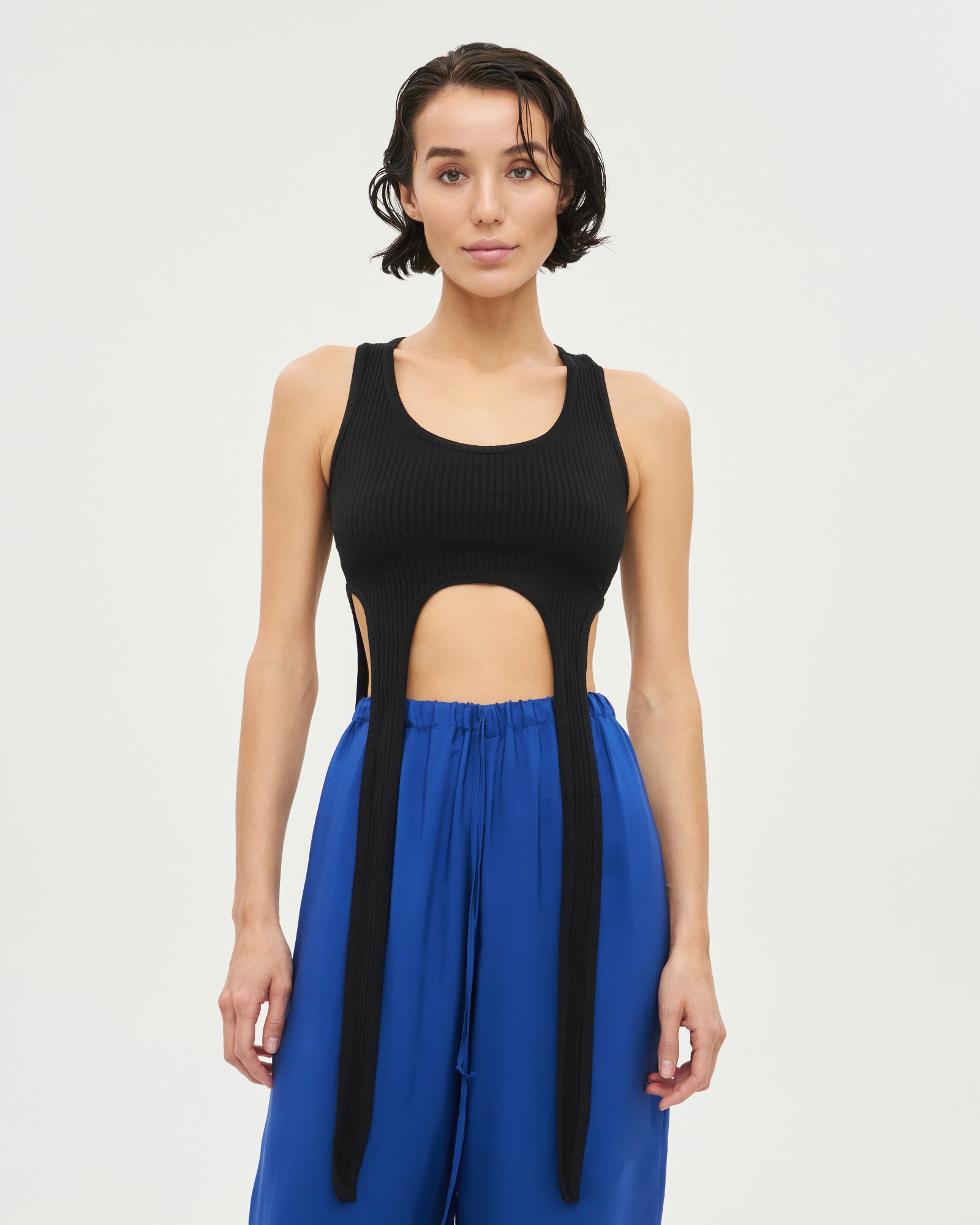 Локальная марка предлагает встречать лето ярко — в разноцветных топах и платьях-сетках, ярко-желтом костюме с принтом под зебру, ультрамариновых струящихся брюках, платье оттенка фуксии с многочисленными бретелями и травянистом комплекте из миди-юбки и кроп-жакета. Правда, базовые айтемы тут тоже встречаются — к примеру, белоснежный костюм-четверка из пиджака, жилета, брюк и бермуд, футболка с принтом или бежевый тренч.
