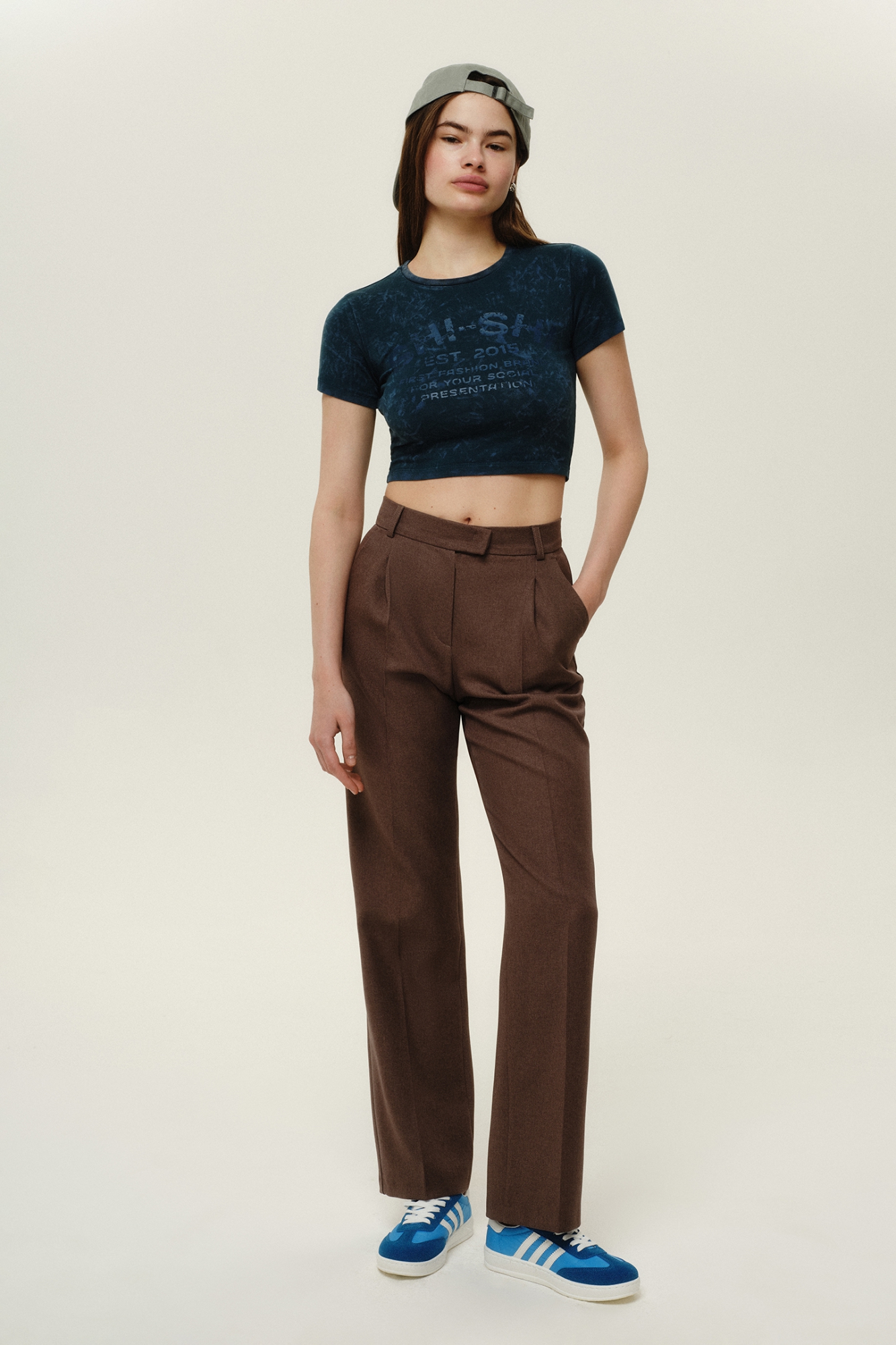 Короткая футболка из хлопка в стиле гранж. Вареный эффект, облегающий силуэт и фирменная надпись на груди. Стилизуйте топ с оверсайз джинсами на заниженной талии, спортивными брюками с защипами или макси юбкой. Представлены в трех цветах.