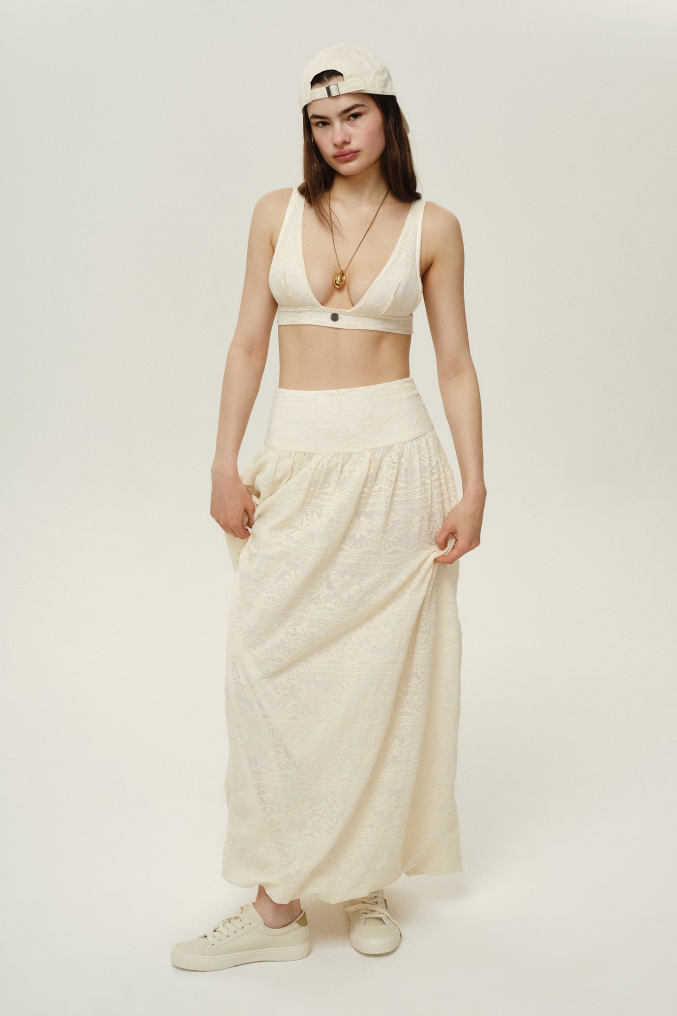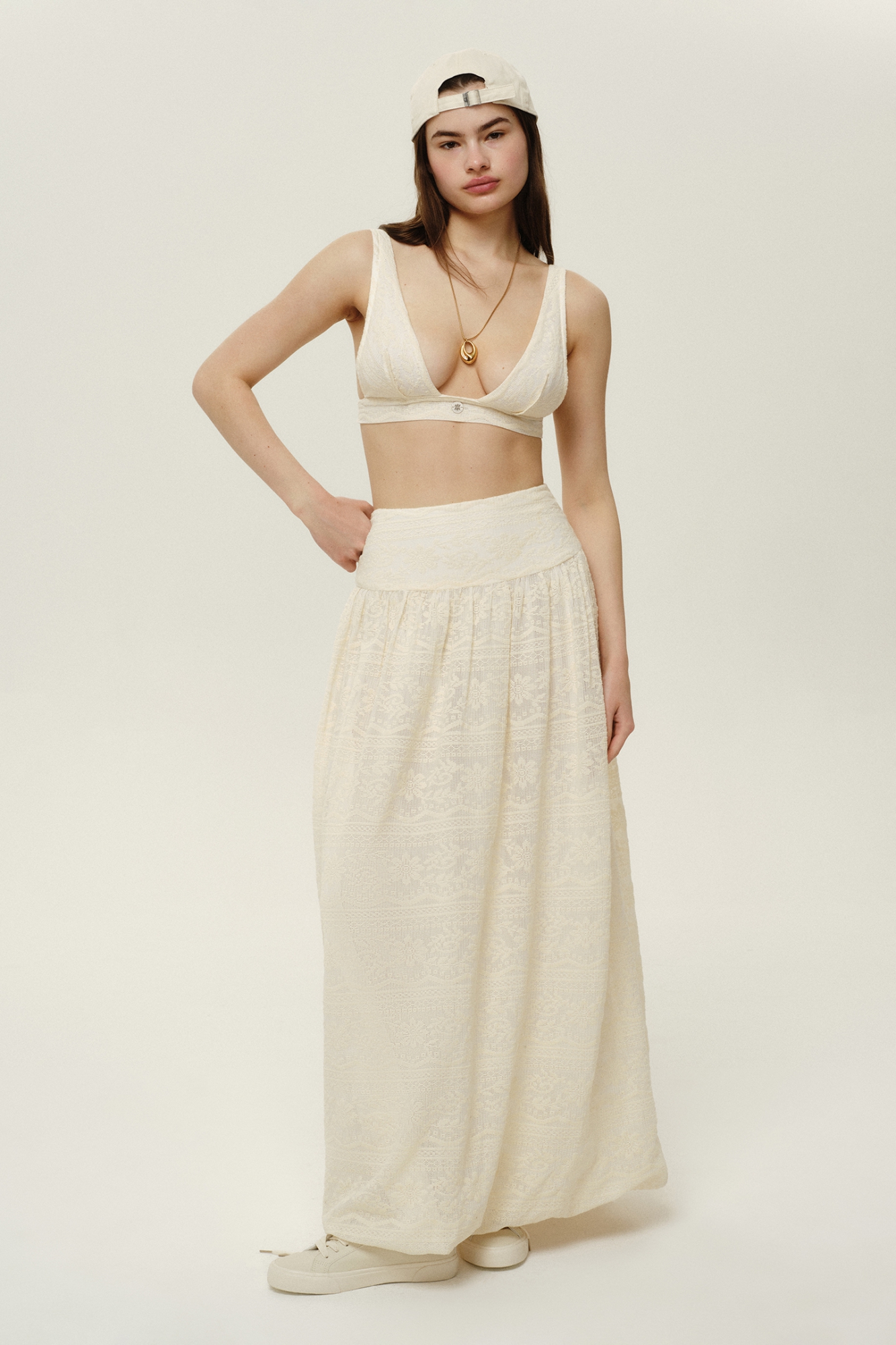 Топ-бра с v-образном вырезом. Поддерживает грудь и хорошее настроение. Стилизуйте с жакетом и джинсами или собирайте тотал «кружевной» лук с юкой макси.