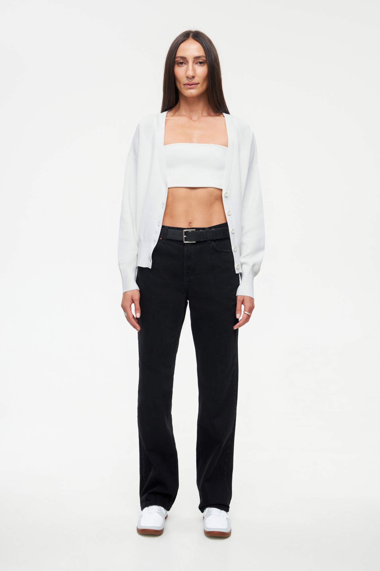 Базовый топ на регулирующихся бретелях может стать самостоятельной единицей в жаркую летнюю погоду. Благодаря вискозе в составе в таком топе будет не жарко – этот материал пропускает воздух и охлаждает. В холодные сезоны топ на бретелях – универсальный первый слой. Для составления комплекта вы можете выбрать кардиган SHI-SHI из той же ткани.