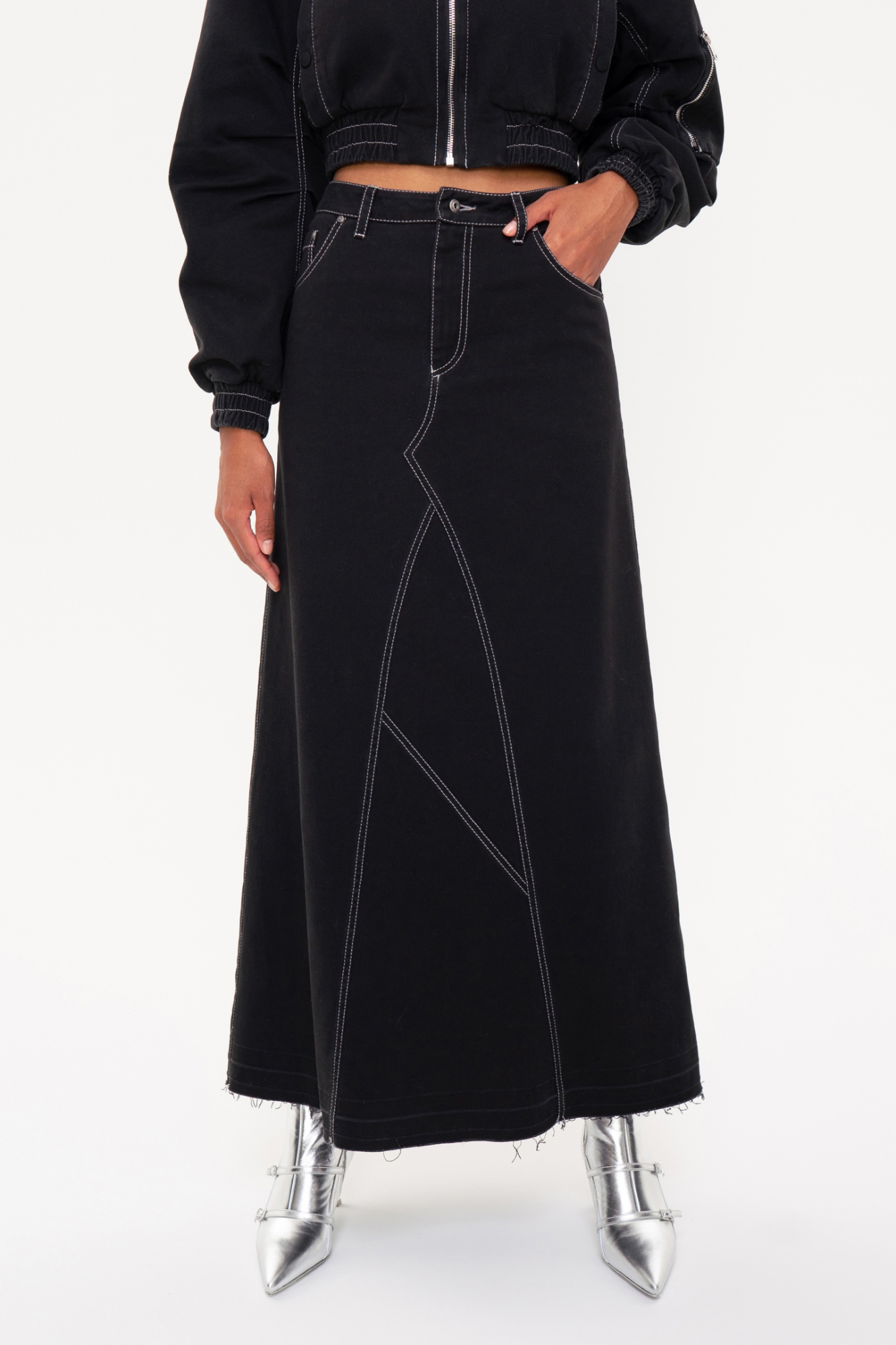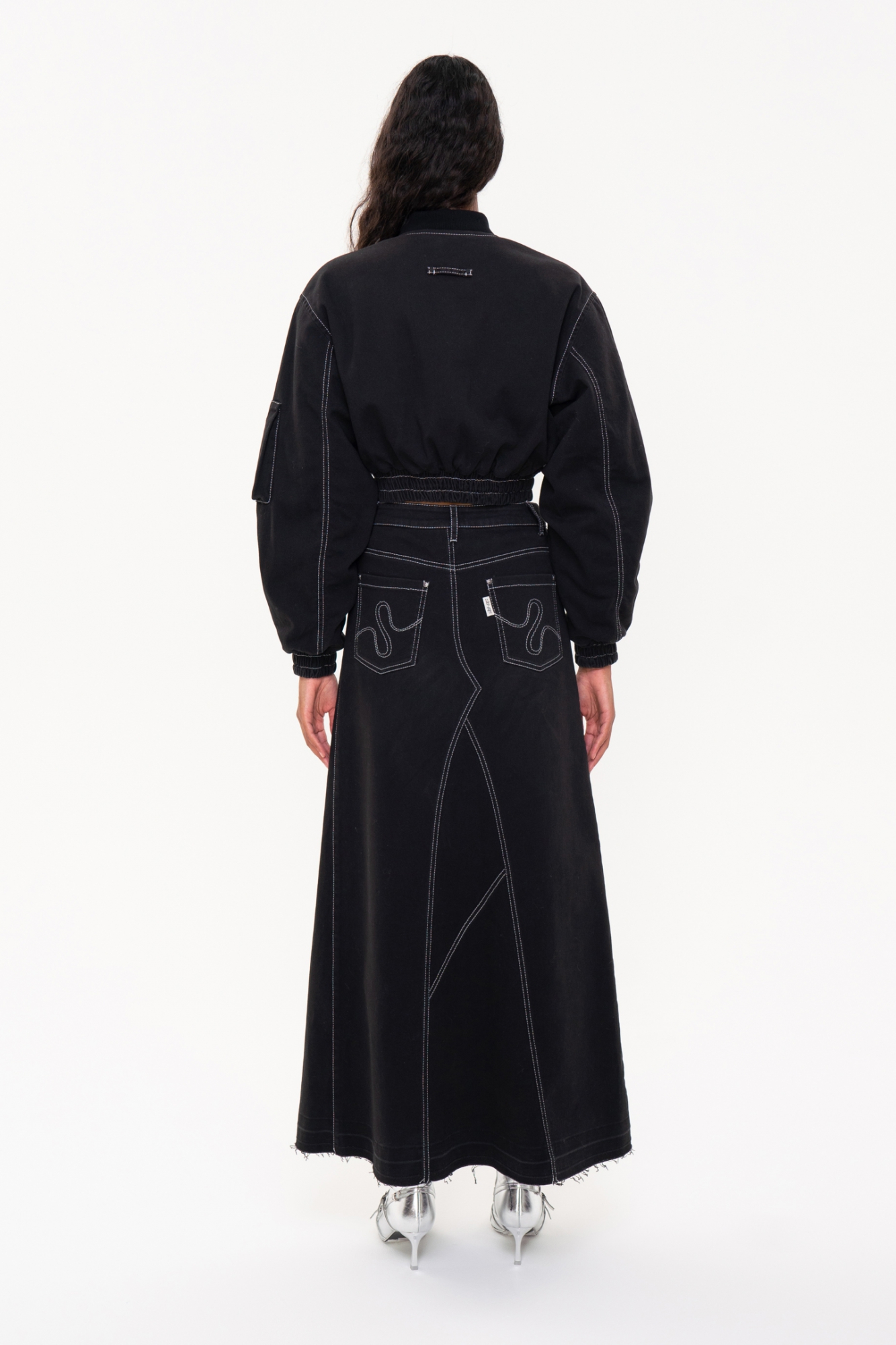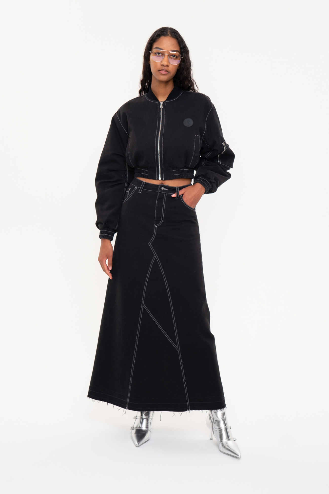 Бомбер короткий с широким рукавом и юбка макси джинсовая