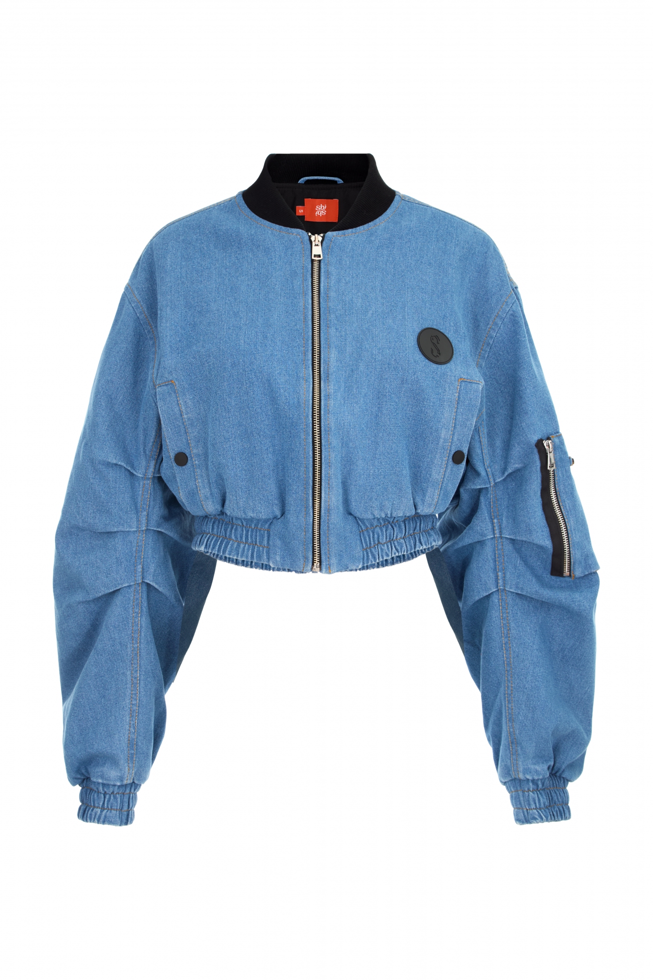 Куртка выполнена по мотивам летной куртки-бомбер, созданной специально для суровых условий. Бомбер SHI-SHI изготовлен в более трендовом укороченном варианте для самых смелых образов. Из стилистических особенностей: объемные рукава с декоративными складками, контрастные черные молнии, кнопки и трикотажный воротник, перекликающиеся с фирменной нашивкой SHI-SHI.