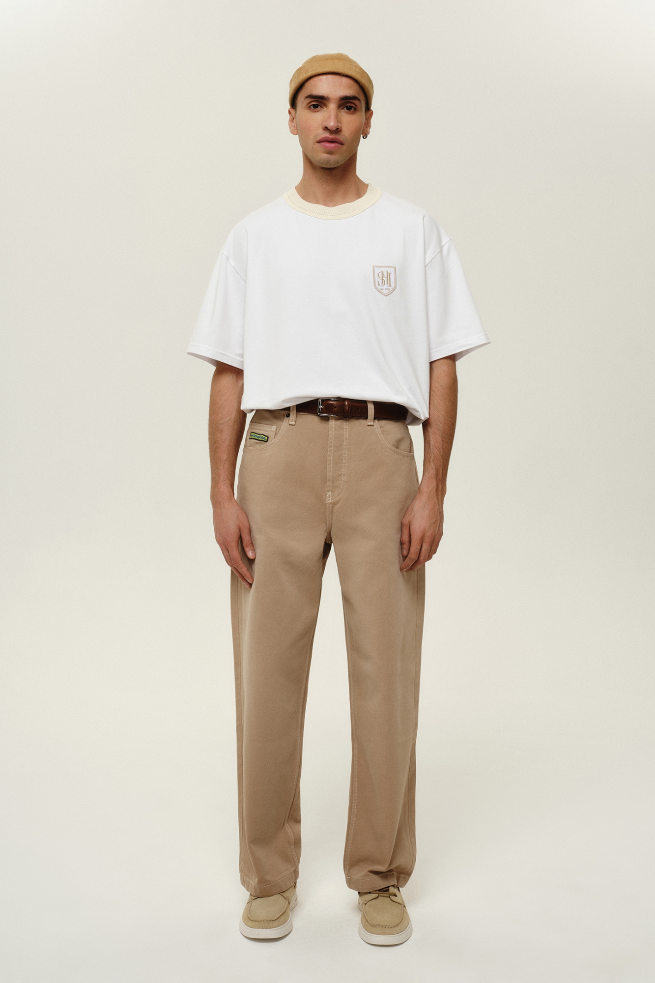 Базовая оверсайз футболка. Стильный и лаконичный предмет гардероба. Контрастная окантовка и лого бренда на груди добавляет образу баллов, отсылая к стилю old money.