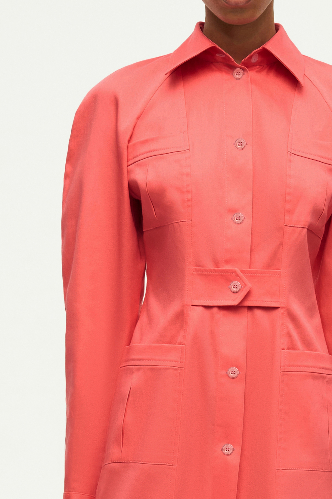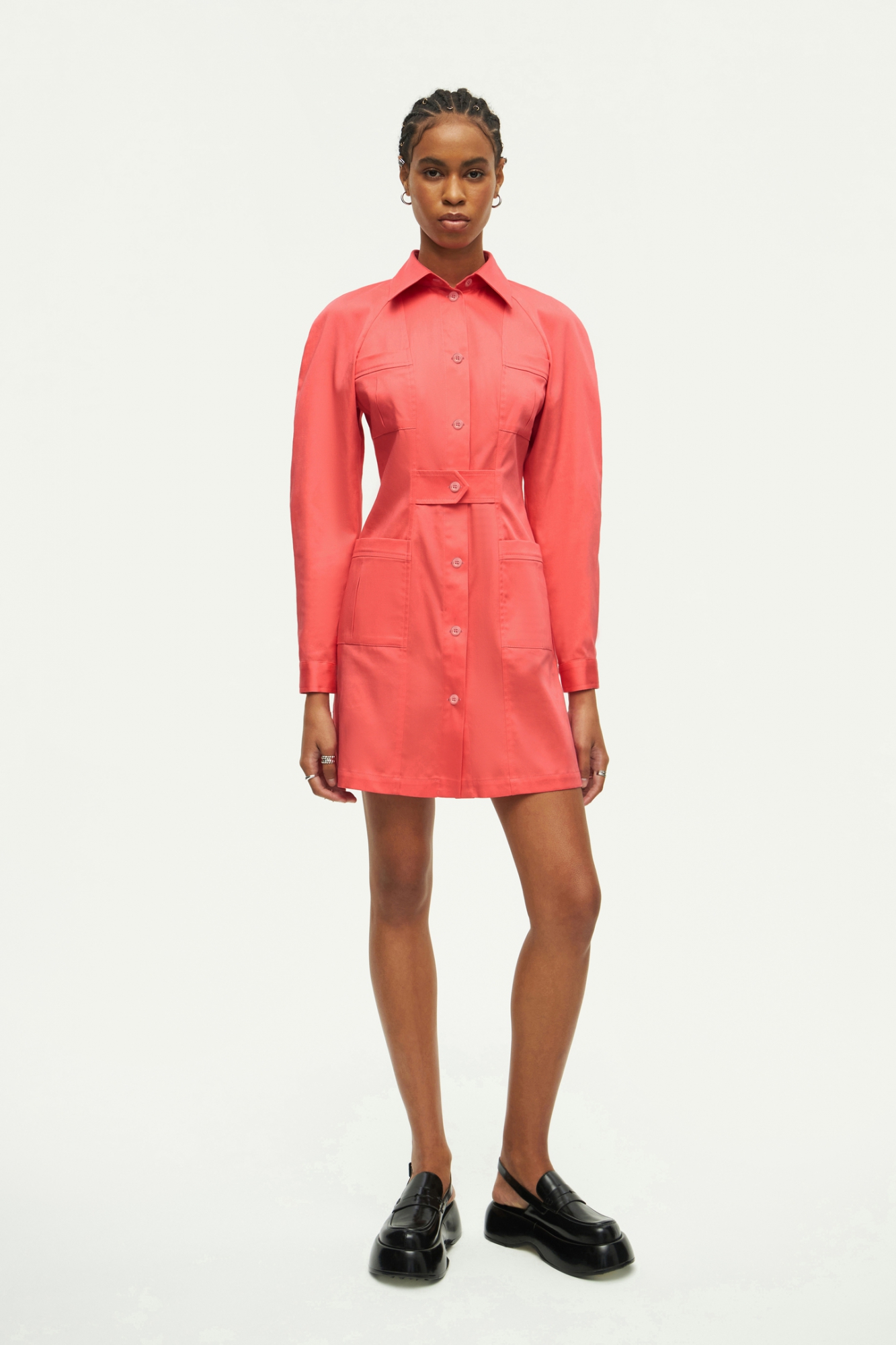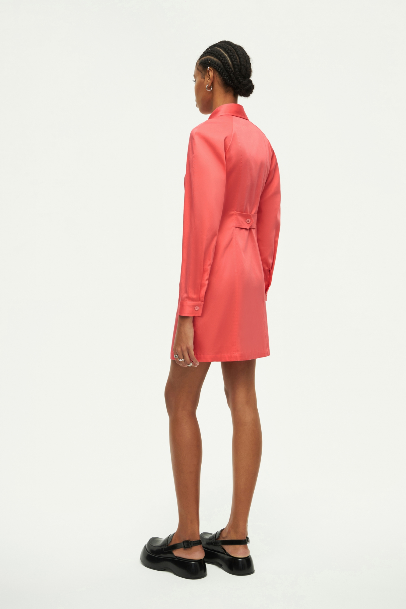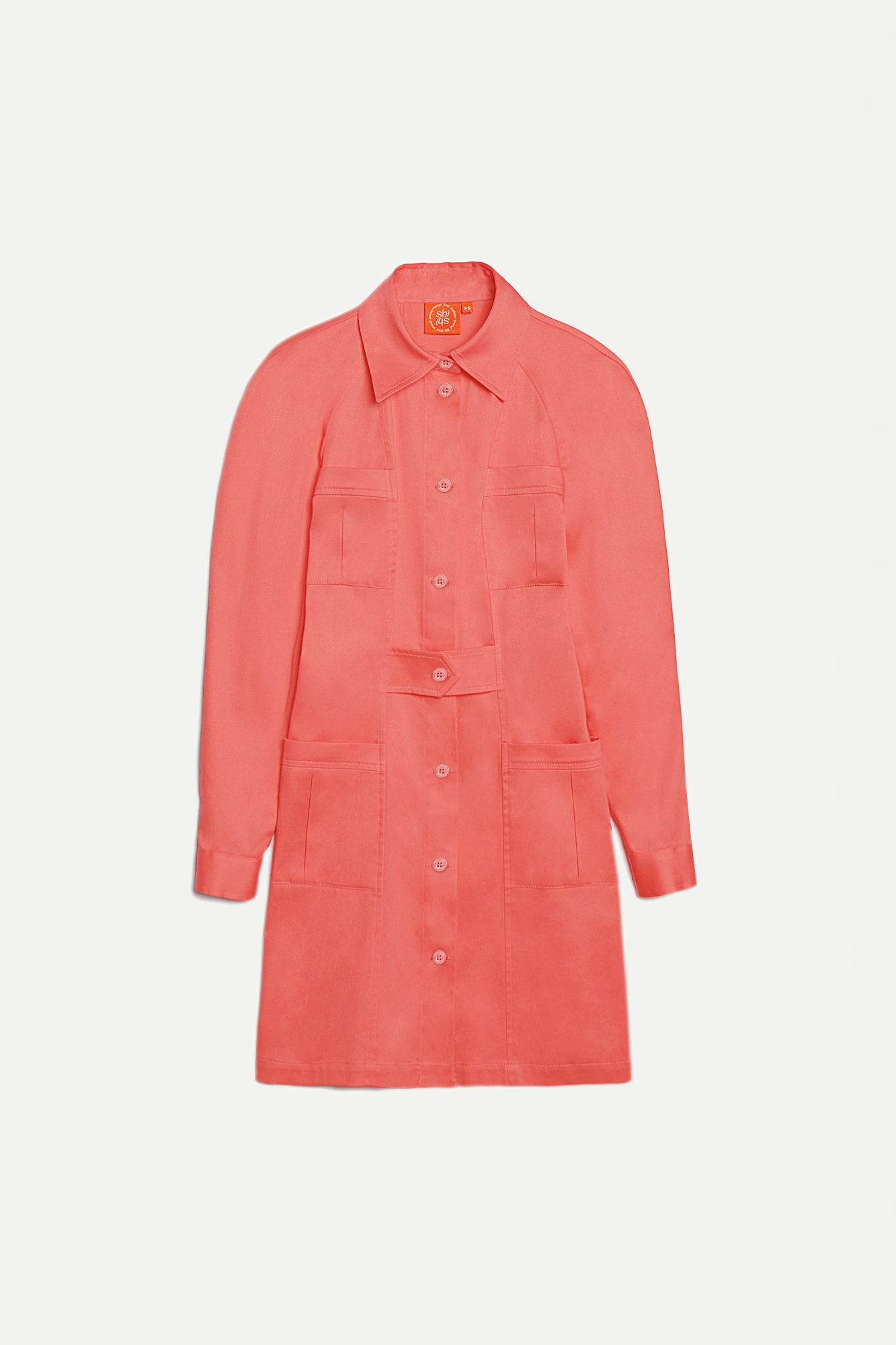 Сочетание кокетливого мини и строгого воротничка. Оставить платье застёгнутым на все пуговицы или «докрутить» игривость образа и добавить нижний слой из топа на бретелях SHI-SHI? Решаете вы. В платье читается и намёк на хрупкость Твигги, и яркость безумных 60-х. Выберите к нему в пару любимые кеды или лоферы с гольфами в тон топу.