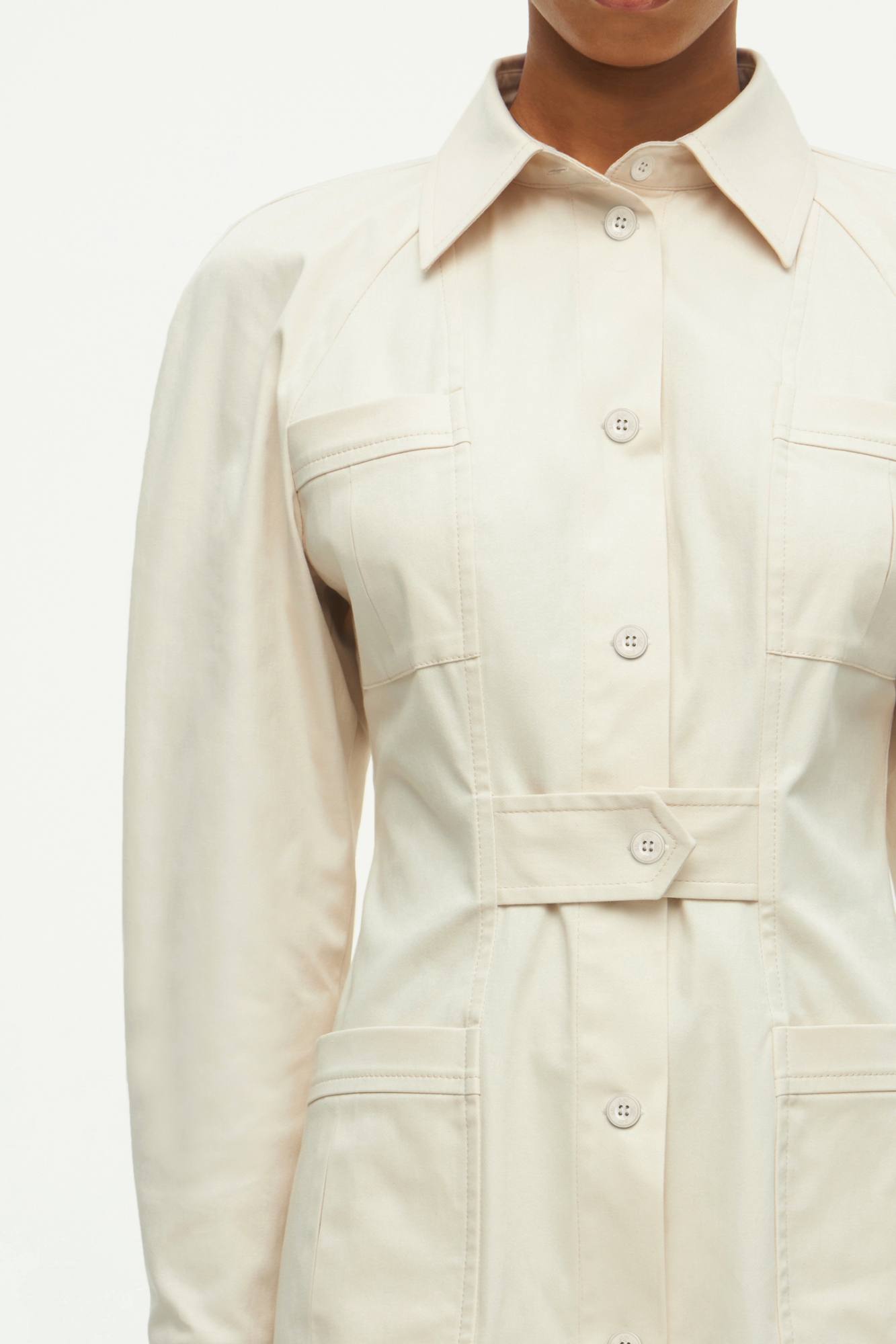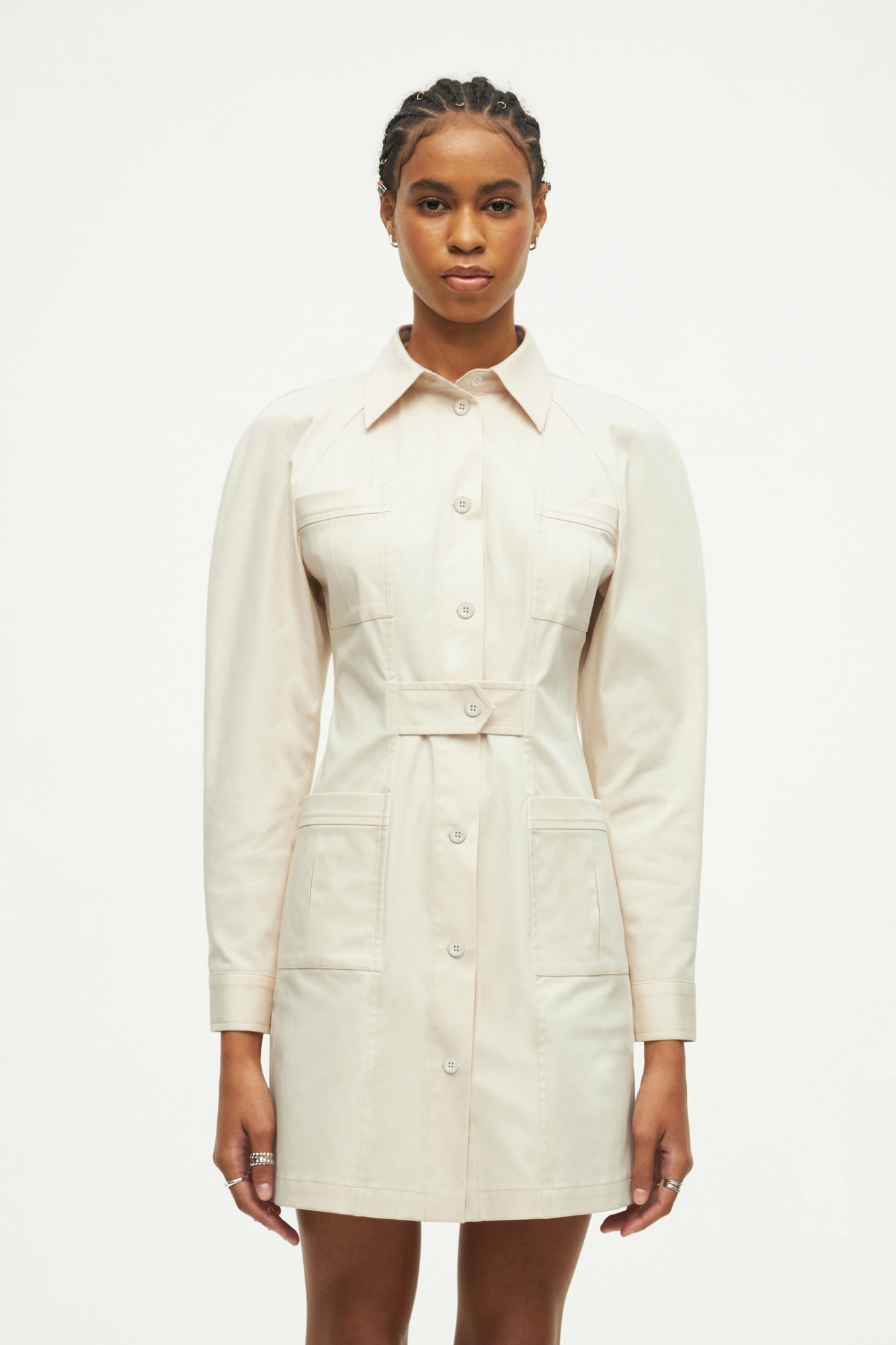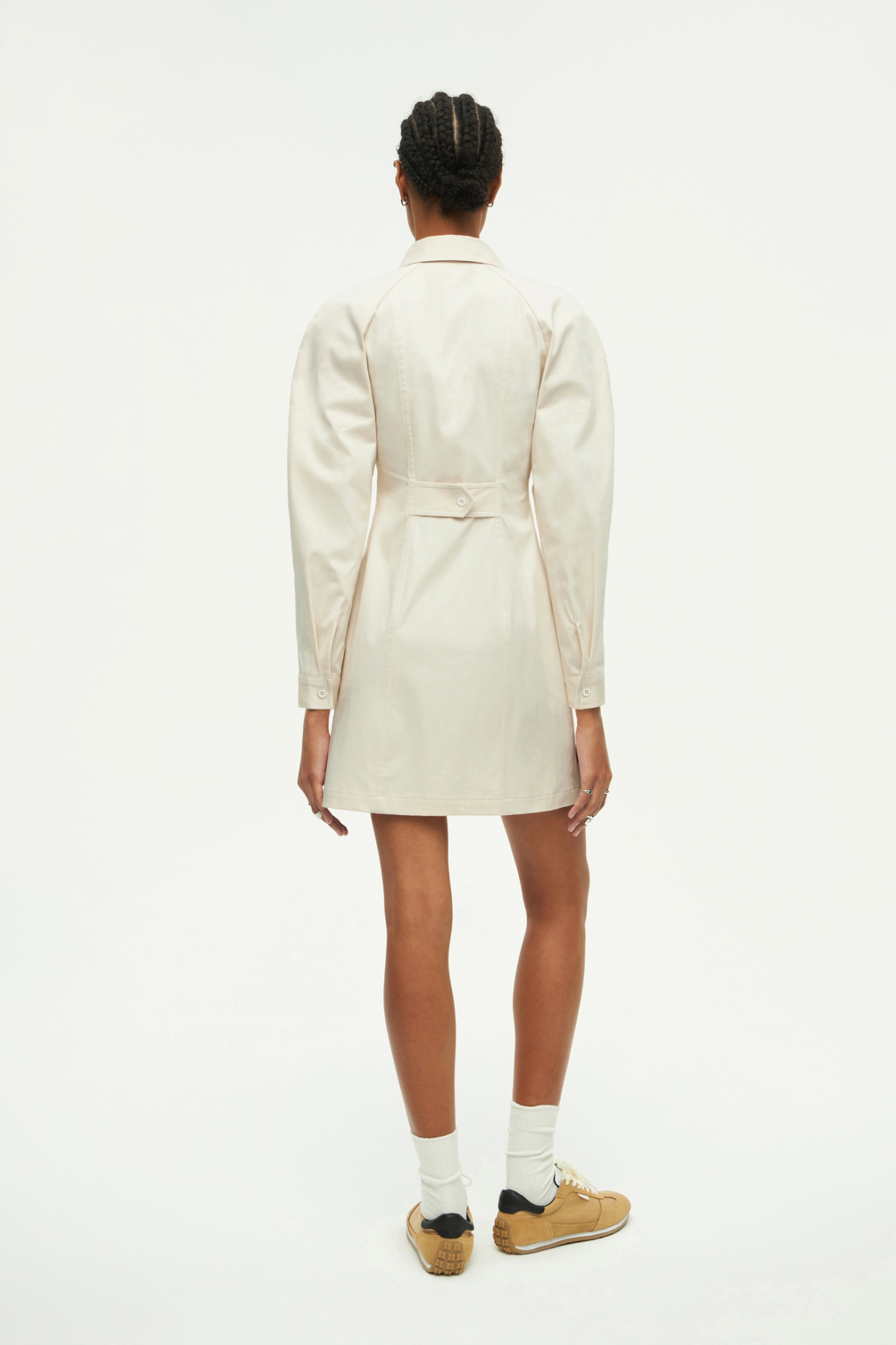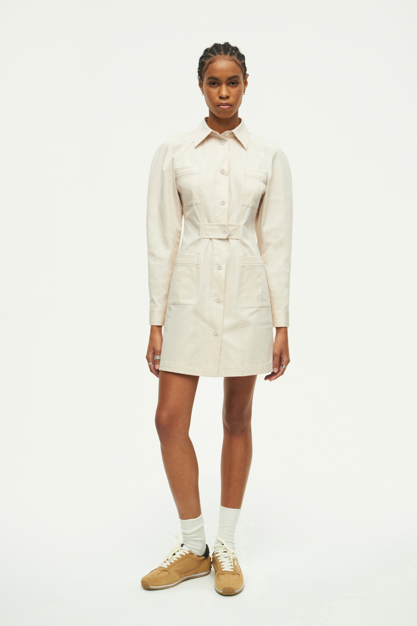Сочетание кокетливого мини и строгого воротничка. Оставить платье застёгнутым на все пуговицы или «докрутить» игривость образа и добавить нижний слой из топа на бретелях SHI-SHI? Решаете вы. В платье читается и намёк на хрупкость Твигги, и яркость безумных 60-х. Выберите к нему в пару любимые кеды или лоферы с гольфами в тон топу.