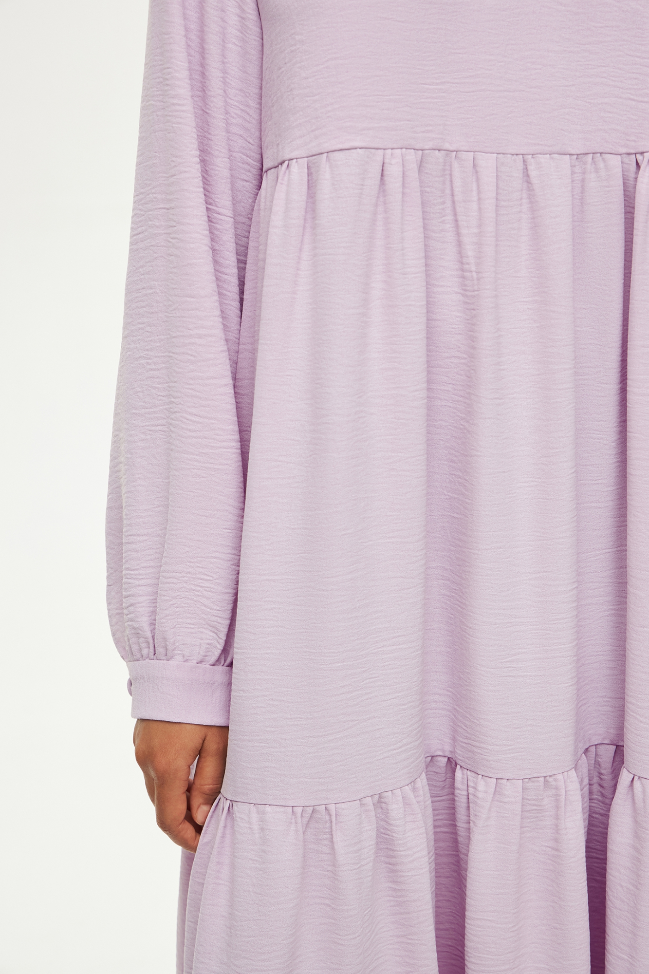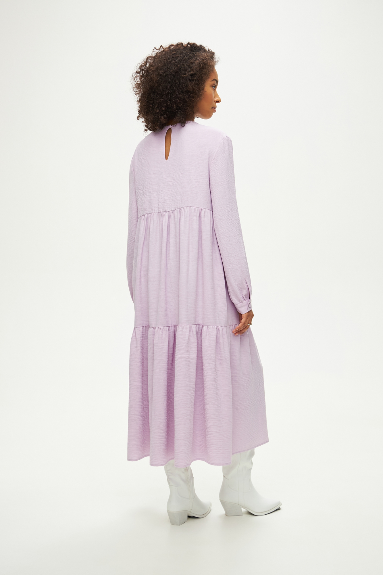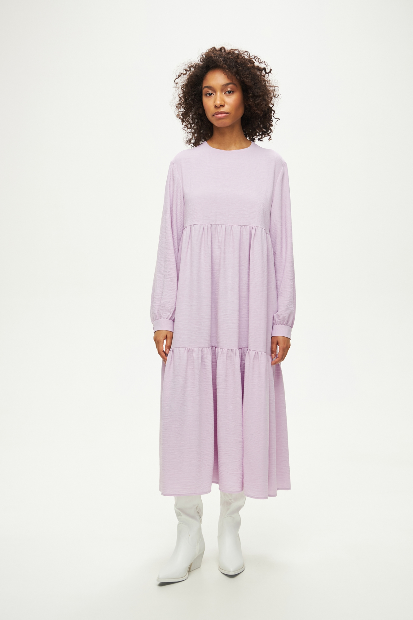 Платье макси в стиле бэбидолл считается одним из самых комфортных и трендовых мастхевов уже не первый год. Трапециевидный крой многоярусного платья подойдет любой фигуре, а спущенная линия плеча и объемные рукава позволят ощутить свободу в любом движении. Красивая матовая фактура ткани придает легкость и изящество изделию.