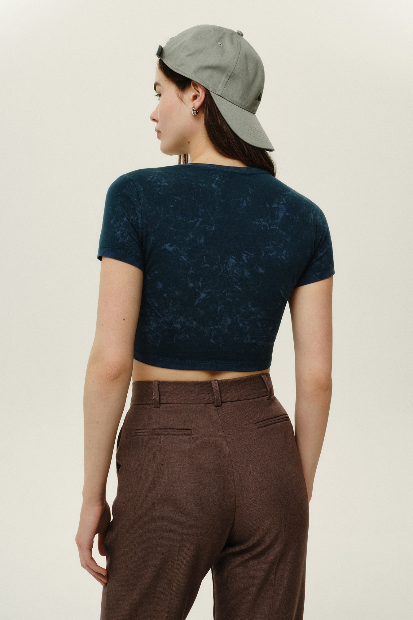 Короткая футболка из хлопка в стиле гранж. Вареный эффект, облегающий силуэт и фирменная надпись на груди. Стилизуйте топ с оверсайз джинсами на заниженной талии, спортивными брюками с защипами или макси юбкой. Представлены в трех цветах.
