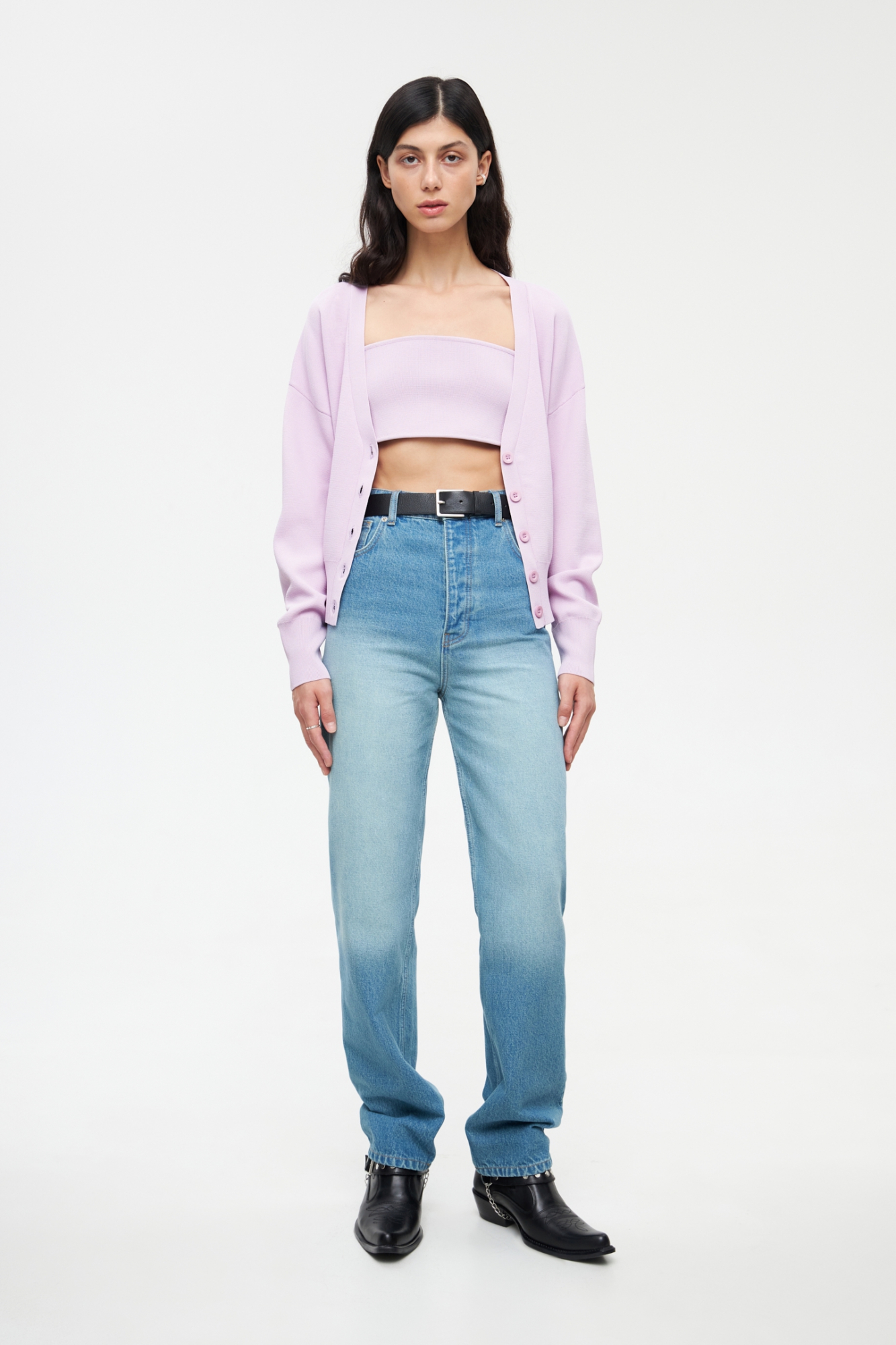 Базовый топ на регулирующихся бретелях может стать самостоятельной единицей в жаркую летнюю погоду. Благодаря вискозе в составе в таком топе будет не жарко – этот материал пропускает воздух и охлаждает. В холодные сезоны топ на бретелях – универсальный первый слой. Для составления комплекта вы можете выбрать кардиган SHI-SHI из той же ткани.