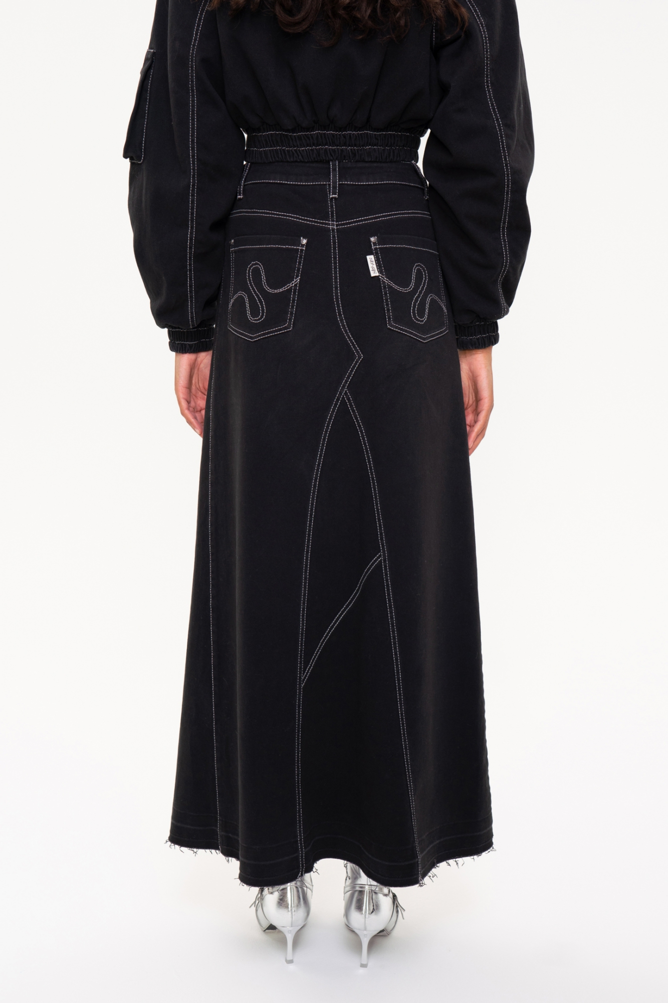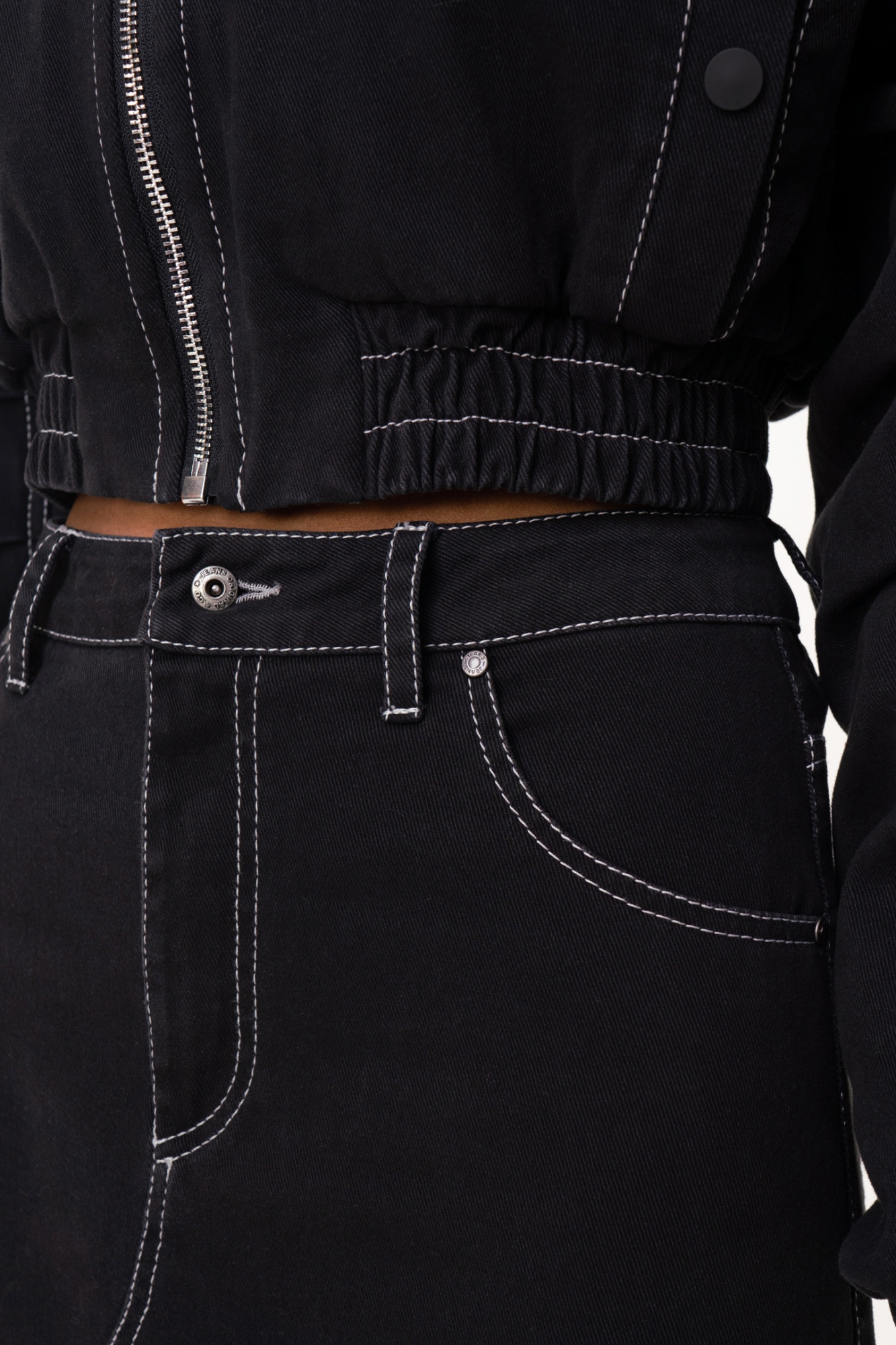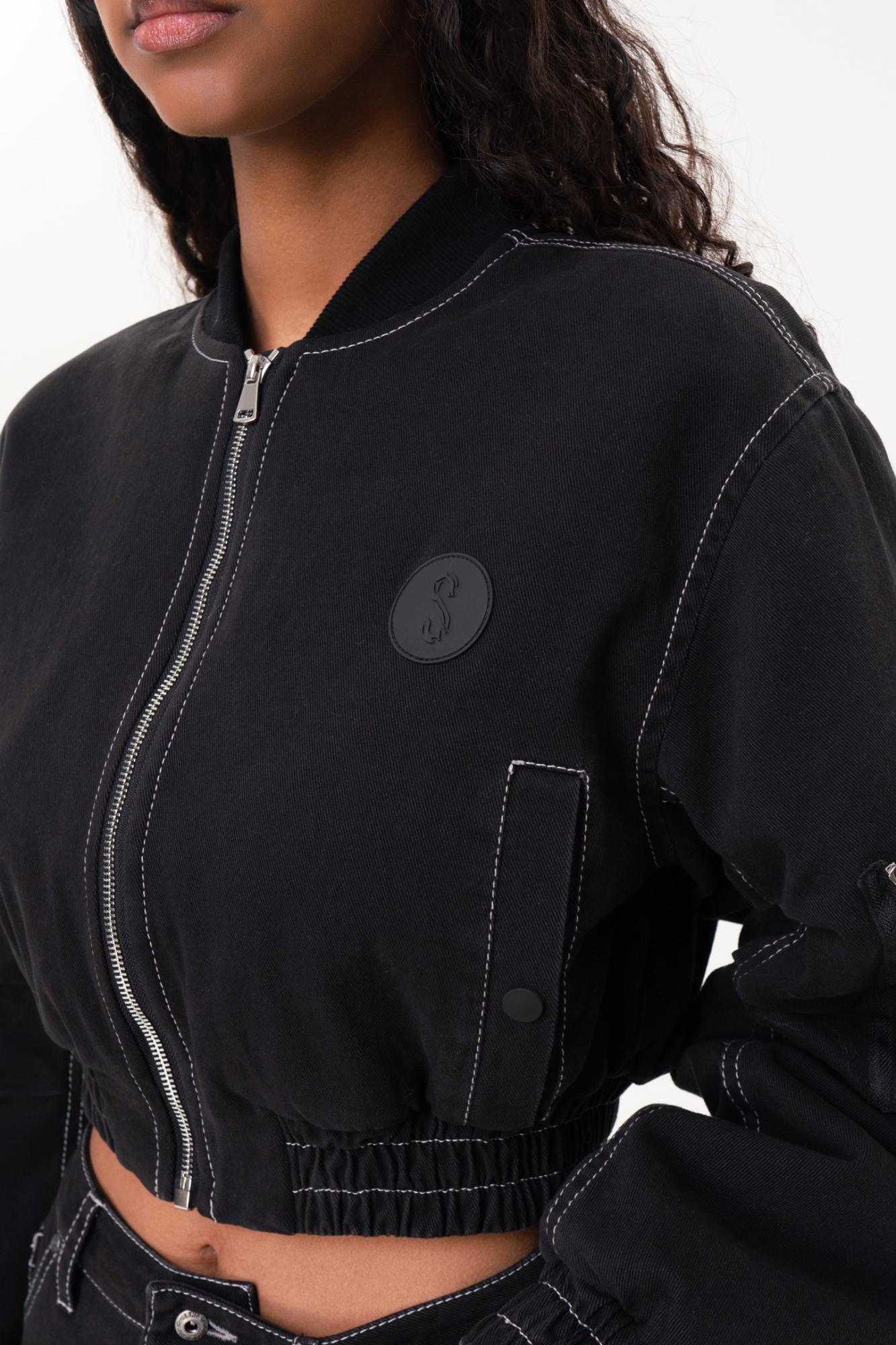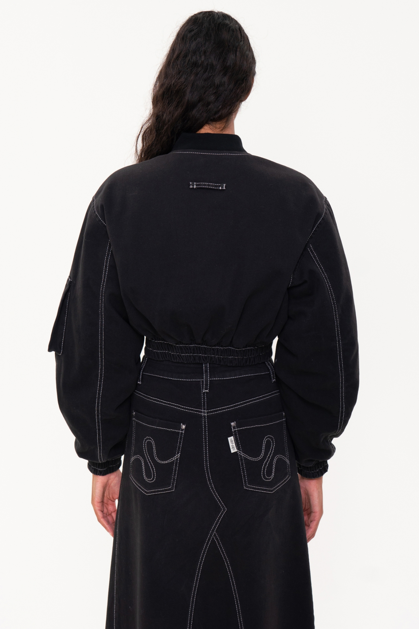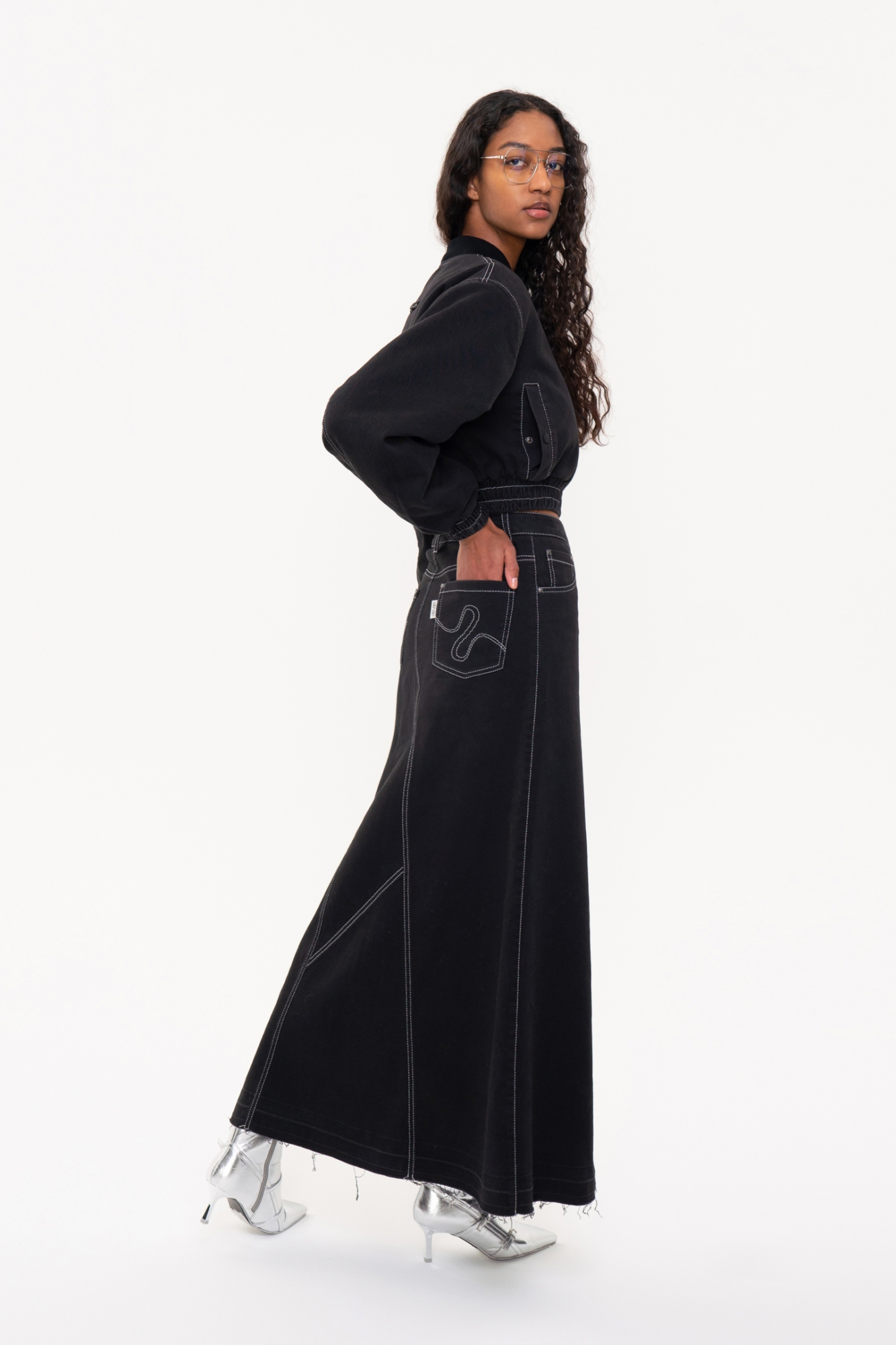 Бомбер короткий с широким рукавом и юбка макси джинсовая