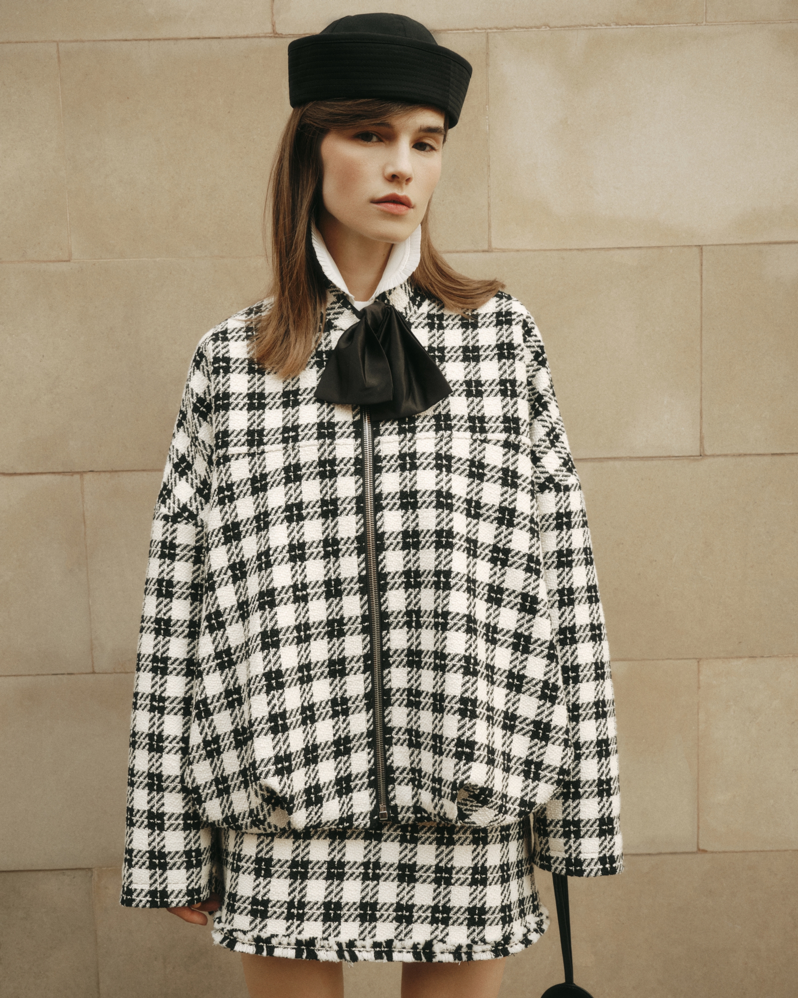 Мы не перестаем экспериментировать с пальтовой тканью. Из нее мы выполнили oversize бомбер с объемными рукавами, воротником-стойкой, двумя карманами, утеплителем из шерсти и внутренней отделкой из эко-кожи. В бомбере отражается идеальный баланс маскулинности и женственности.