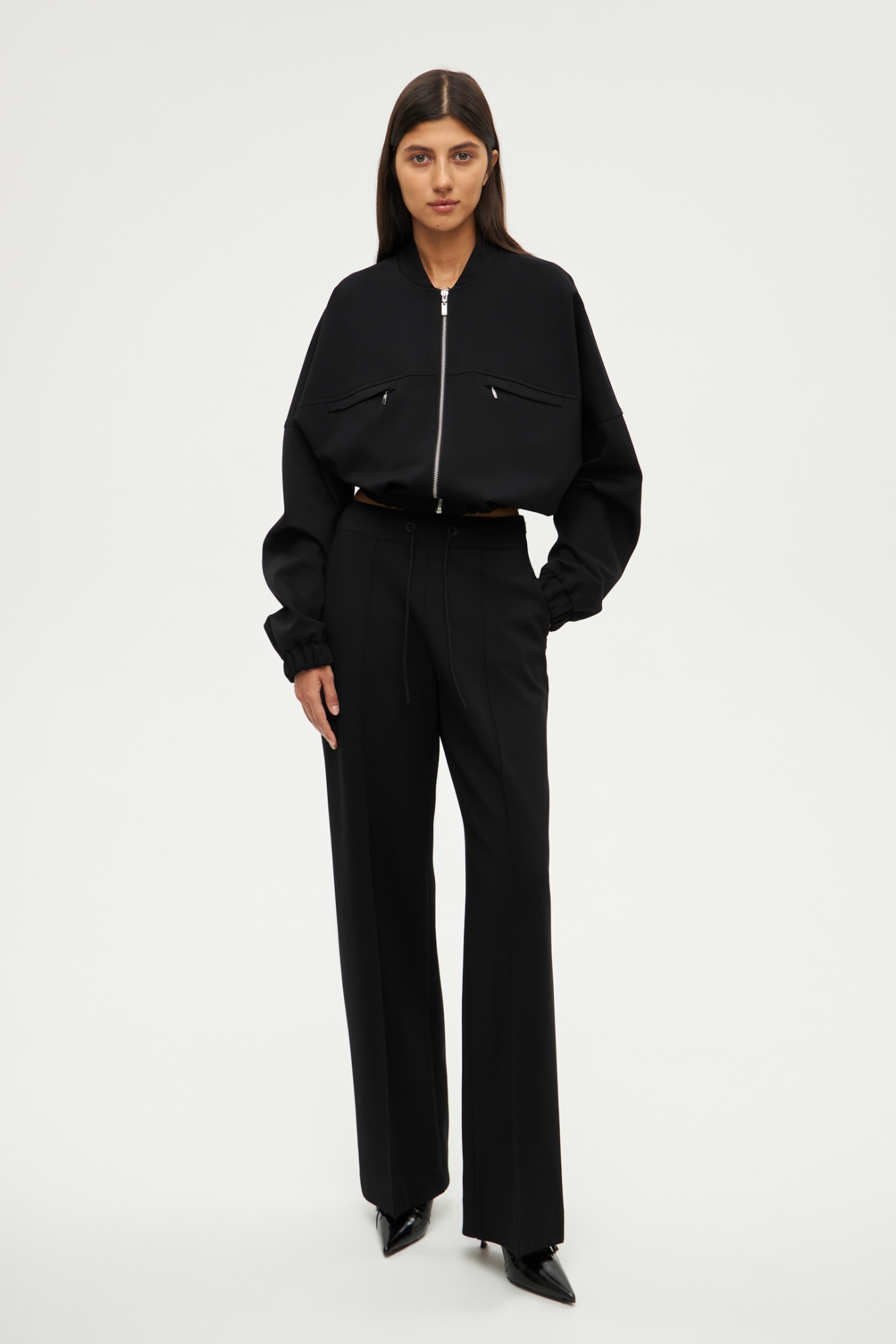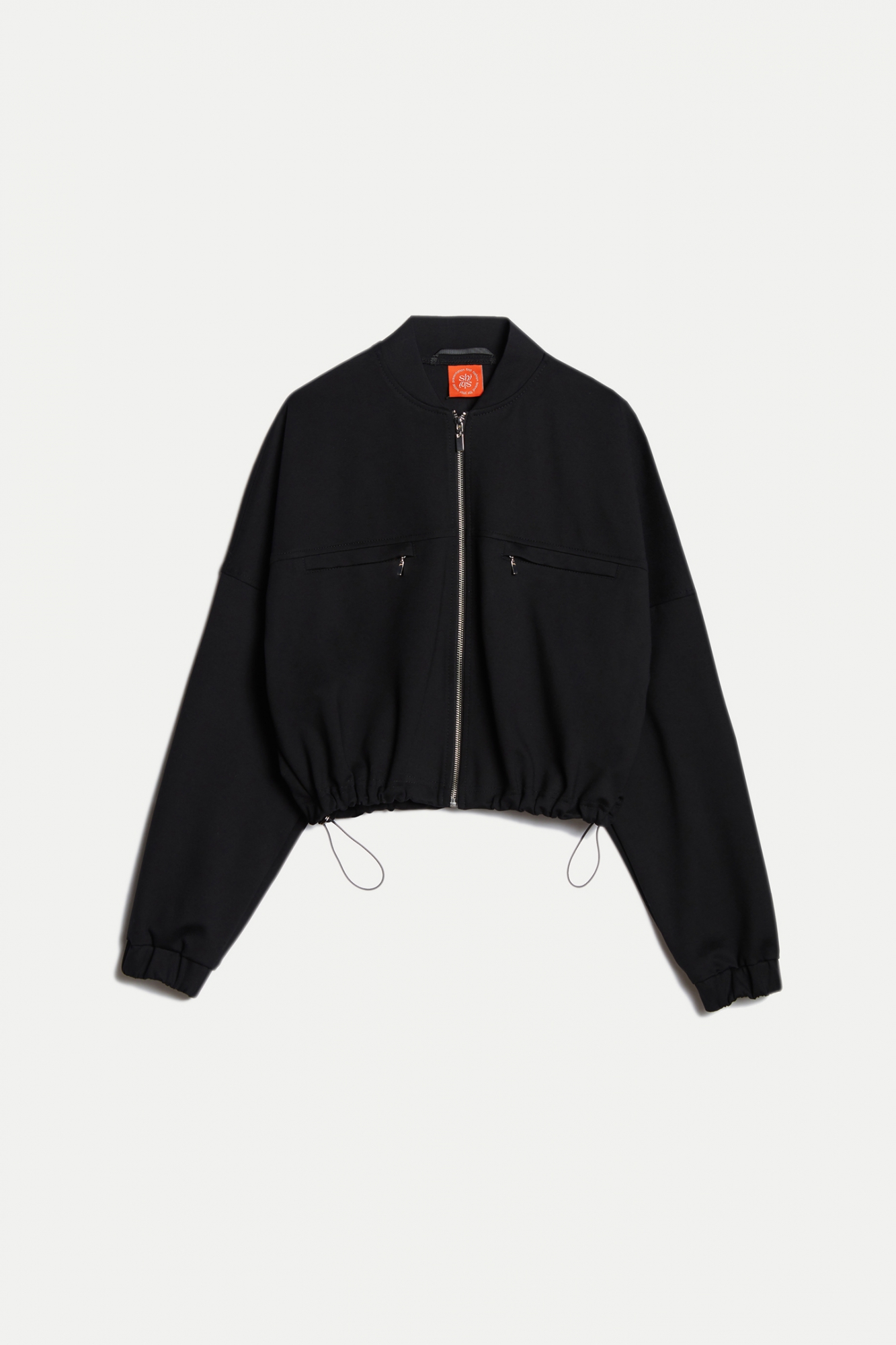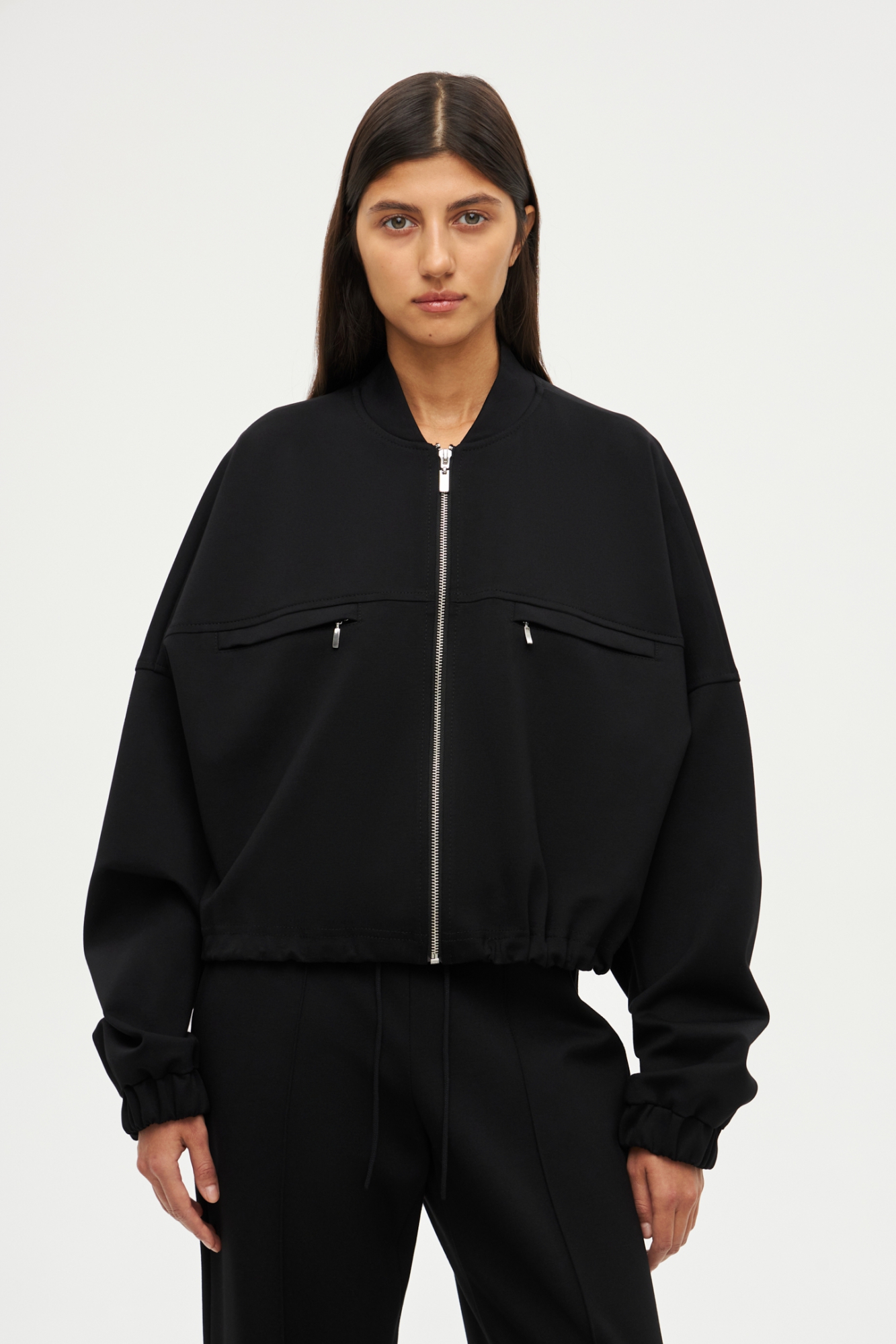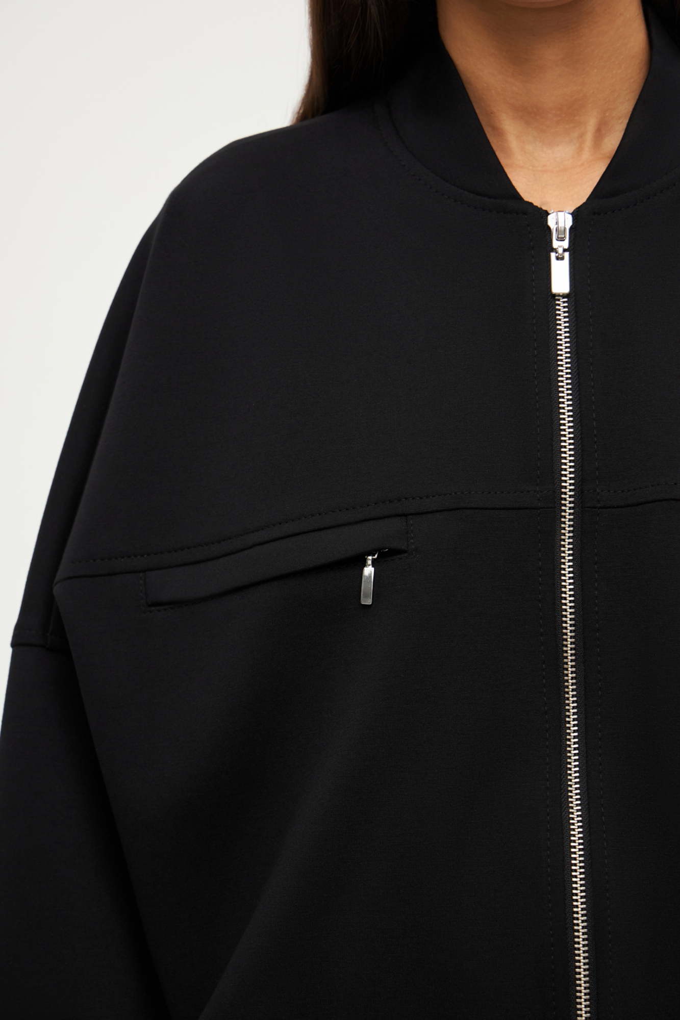 Интерпретация классической куртки от SHI-SHI в трикотажном варианте с нестандартным кроем. Она может быть с вами круглый год – берите ее в отпуск для прохладных ночей на море или одевайте ее в офис как один из слоев в холодную зиму. Бомбер изготовлен из премиального трикотажа в составе с вискозой. Из деталей: oversize силуэт, нагрудные потайные карманы на молнии, манжеты на резинке из кашкорсе. Длину и объем куртки можно регулировать кулисой по нижнему краю модели.