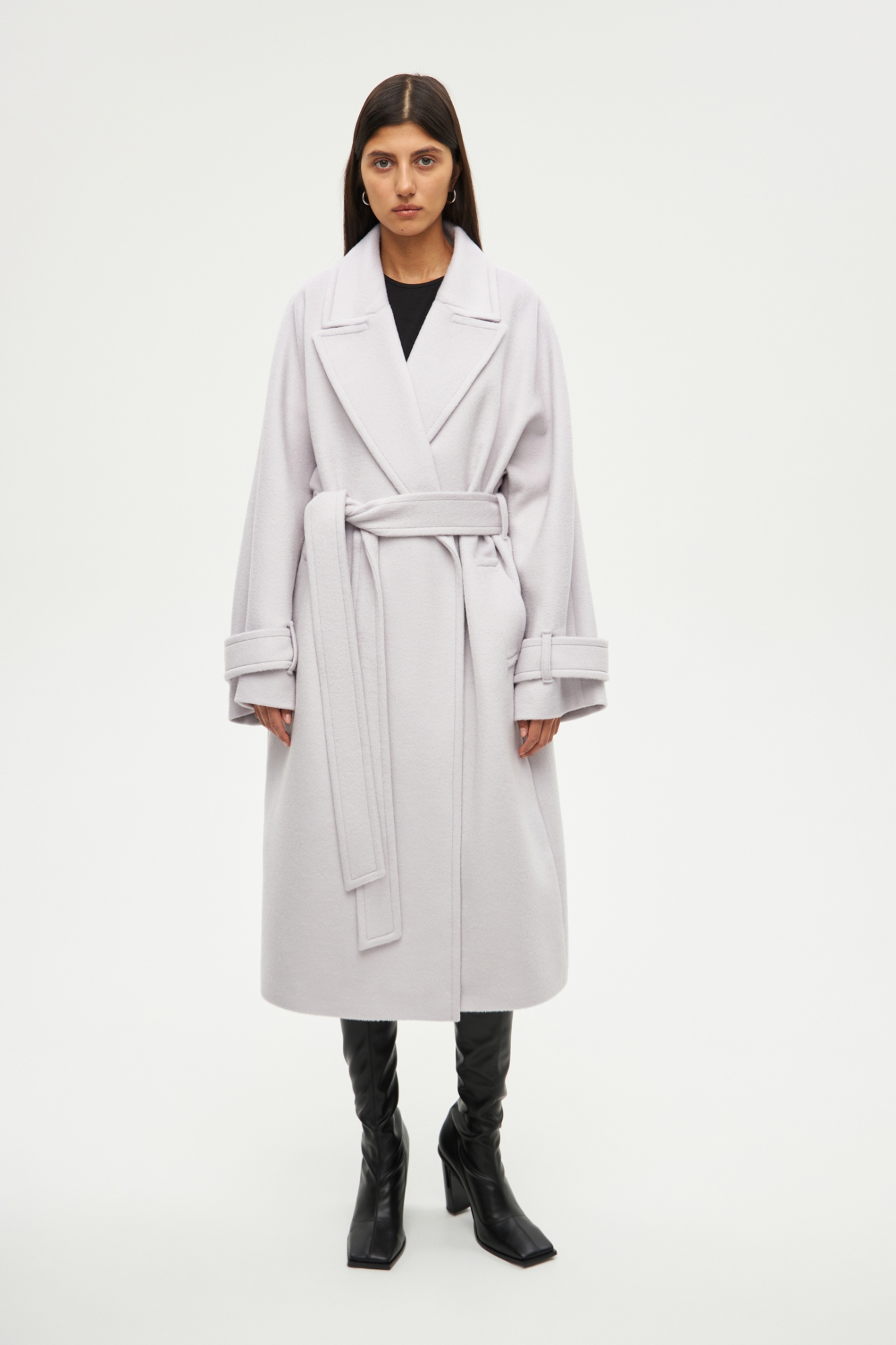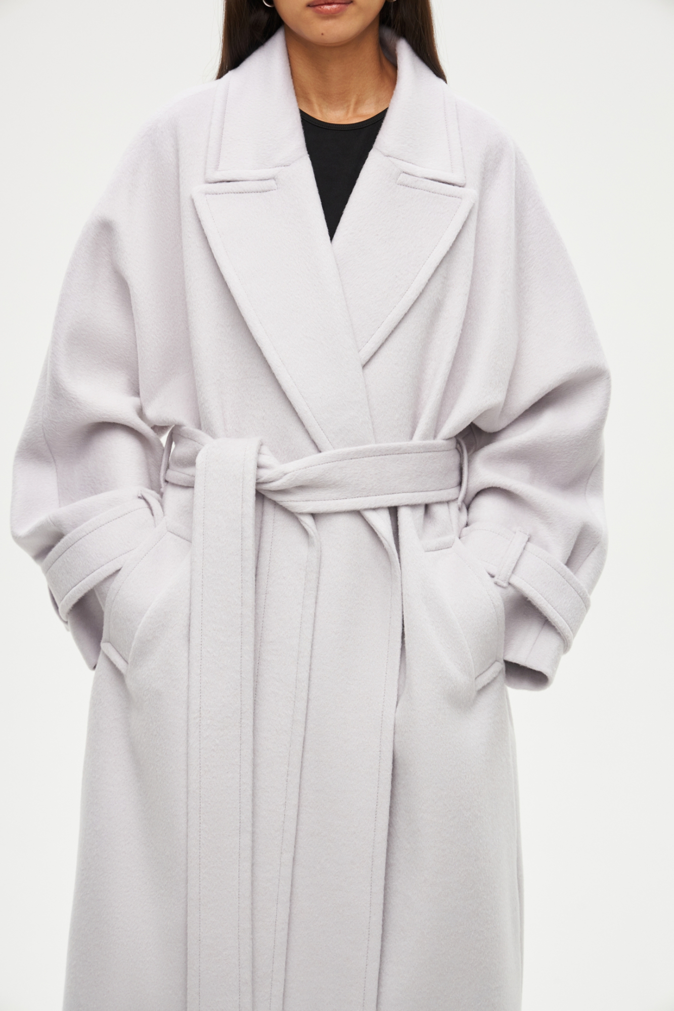 Объёмная модель пальто с цельнокроеным рукавом для тех, кто любит оверсайз, свободу в движениях и мыслях. Подобный крой рукава позволяет носить данную модель с объёмными свитерами, худи или жакетами. Пальто застёгивается на запах под пояс, широкий воротник всегда можно приподнять и укрыться от пронзительного ветра и не переживать о холоде и комфорте. По бокам идут два кармана-листочка, на рукавах – акцентная отделка.