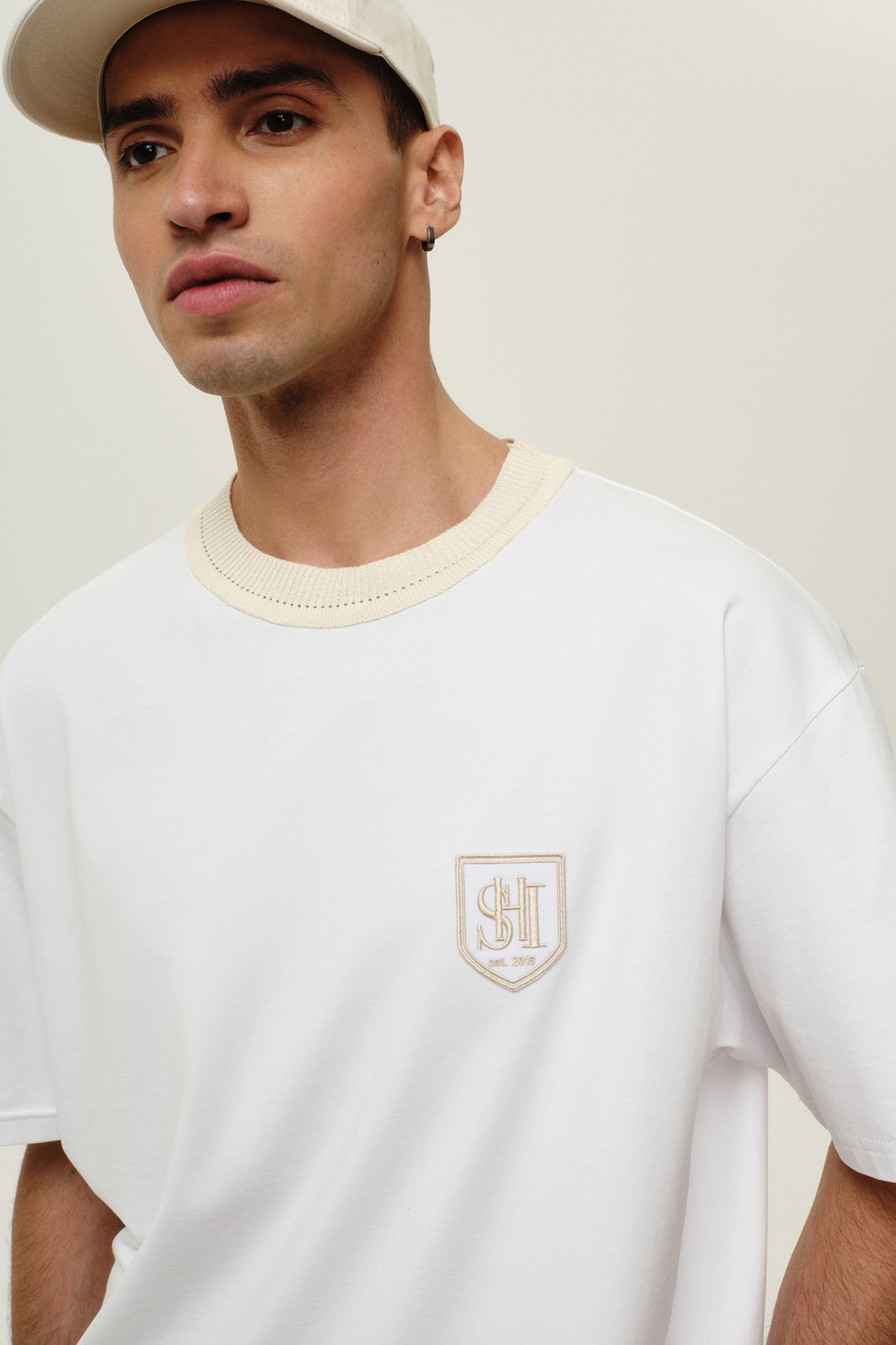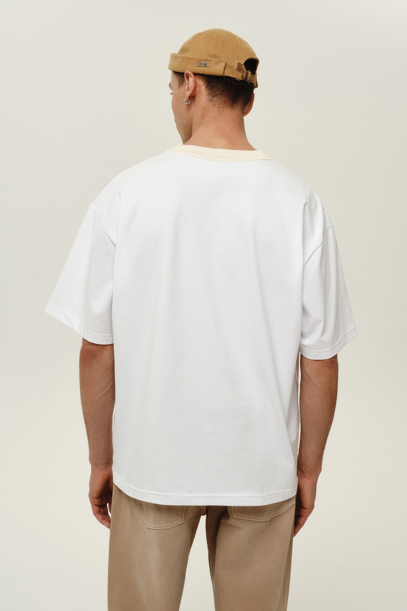 Базовая оверсайз футболка. Стильный и лаконичный предмет гардероба. Контрастная окантовка и лого бренда на груди добавляет образу баллов, отсылая к стилю old money.
