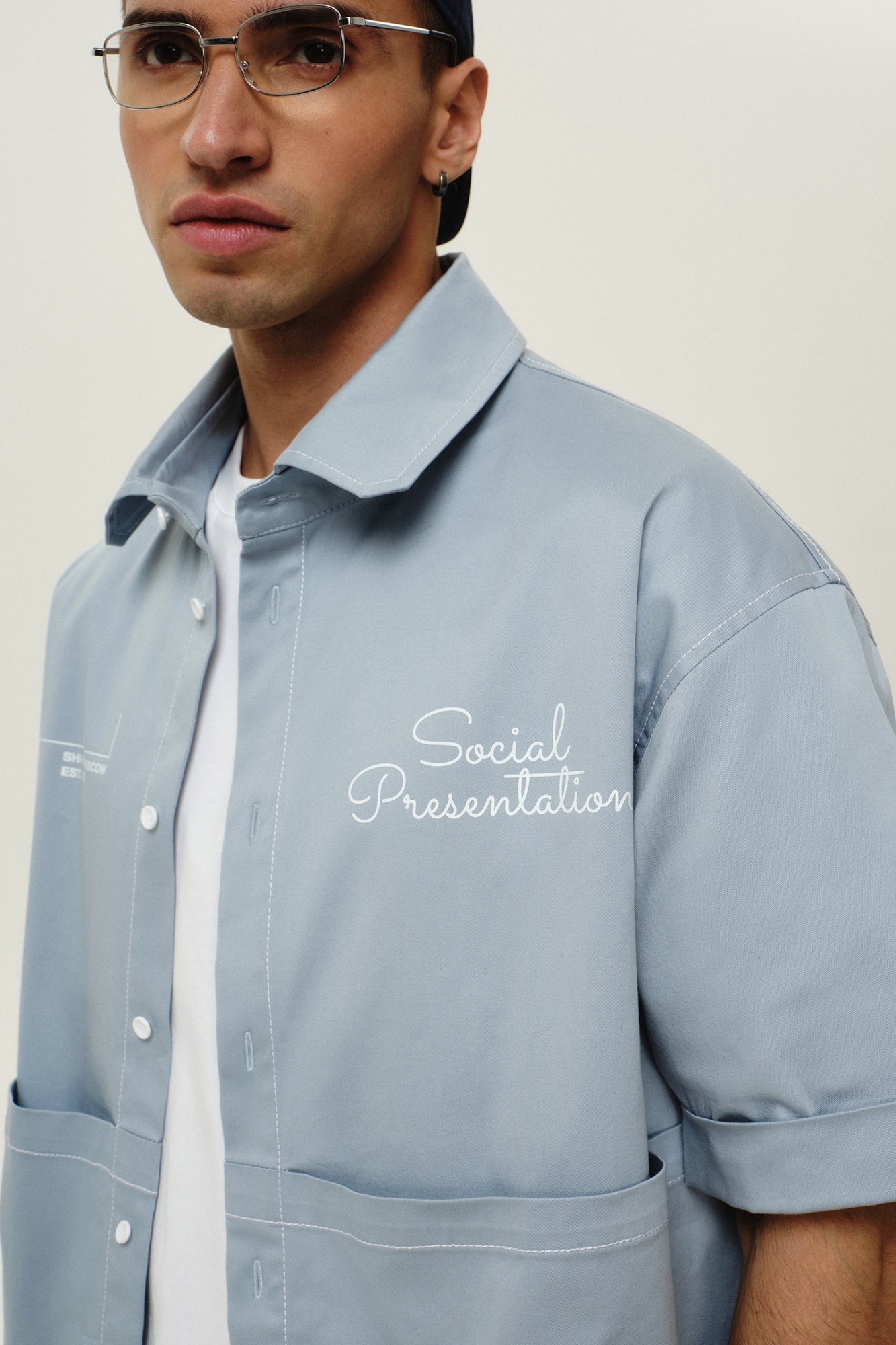 Хлопковая рубашка в стиле кежуал. Отложной воротник, короткие рукава. Абсолютно базовый предмет гардероба с изюминкой — фирменным рисунком на спине. Спрятаться в толпе точно не получится.