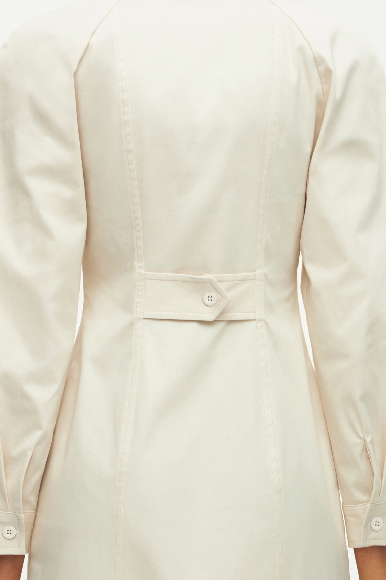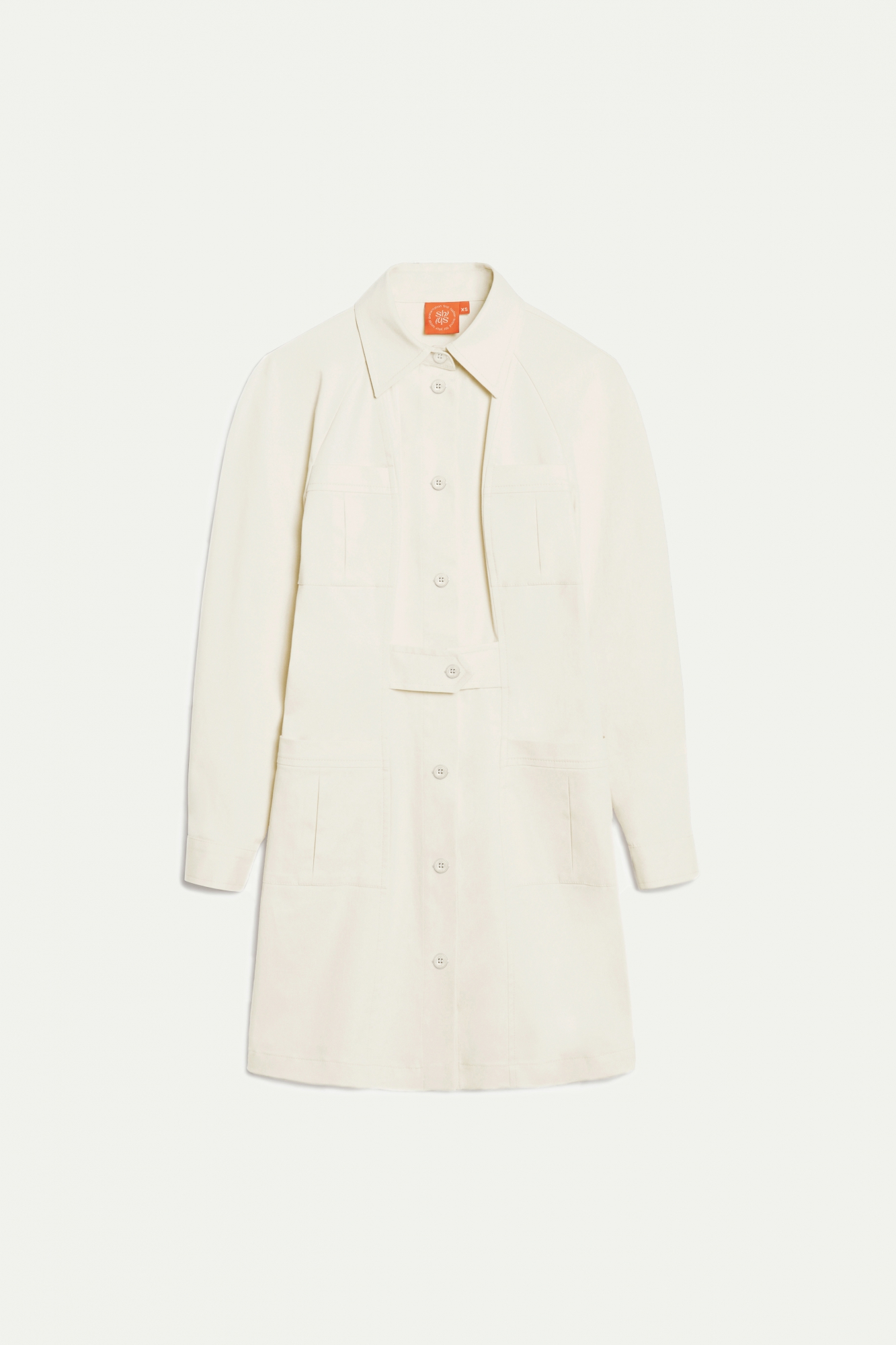 Сочетание кокетливого мини и строгого воротничка. Оставить платье застёгнутым на все пуговицы или «докрутить» игривость образа и добавить нижний слой из топа на бретелях SHI-SHI? Решаете вы. В платье читается и намёк на хрупкость Твигги, и яркость безумных 60-х. Выберите к нему в пару любимые кеды или лоферы с гольфами в тон топу.