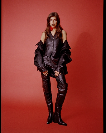 В SHI-SHI нас также вдохновляет культура этого десятилетия, поэтому сегодня вы можете увидеть в каталоге волчью шубу, как у Франсуазы Арди, пиджак и брюки мужского кроя, как у Лорен Хаттон, кожаный тренч в стиле милитари, который обожала Джейн Биркин.